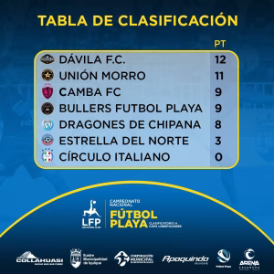El campeonato entra en su fase decisiva y cuatro equipos mantienen viva la lucha por llegar a la gran final programada para el 12 de diciembre. Dávila FC, Unión Morro, Bullers y el actual bicampeón, Camba Pizzero, protagonizarán una última fecha de infarto, donde cada punto será determinante para definir a los finalistas del certamen.